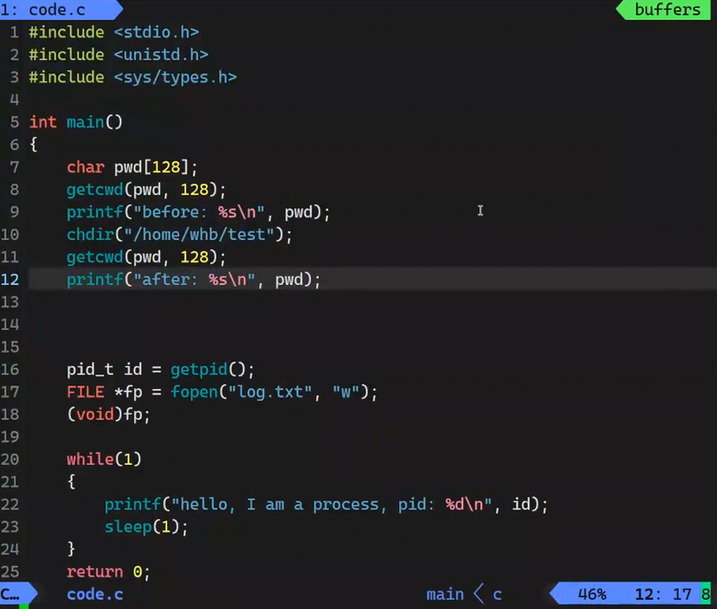 此时工作路径就被改变了,也证明了文件建在哪个路径取决于当前进程的工作路径(cwd)