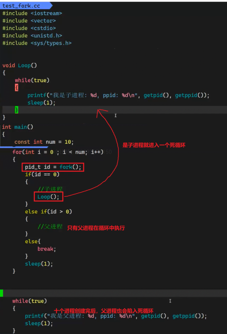 我们以前学习的代码,不可能两个死循环同时在跑,以前的代码都叫做单循环分支。但是我们现在有了父子两个进程,所有同时存在两个死循环
