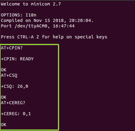 端口加载正常后,可以通过minicom等串口工具核对以下AT