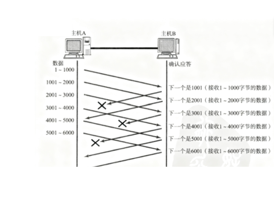 那么后面所有的确认应答都是2001,滑动窗口的左侧会移动到3001不动,将中间报文丢失传化成左侧报文丢失