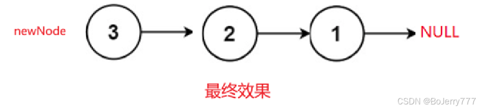 根据头插法将源链表的头结点,头插入新建的newNode 链表中。
