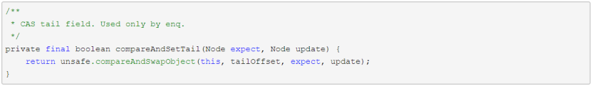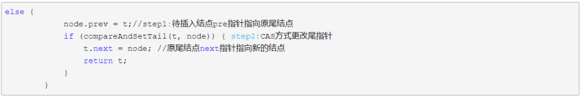 - compareAndSetTail(t, node),CAS方式更新tail指针,仅当原值为t时更新成功