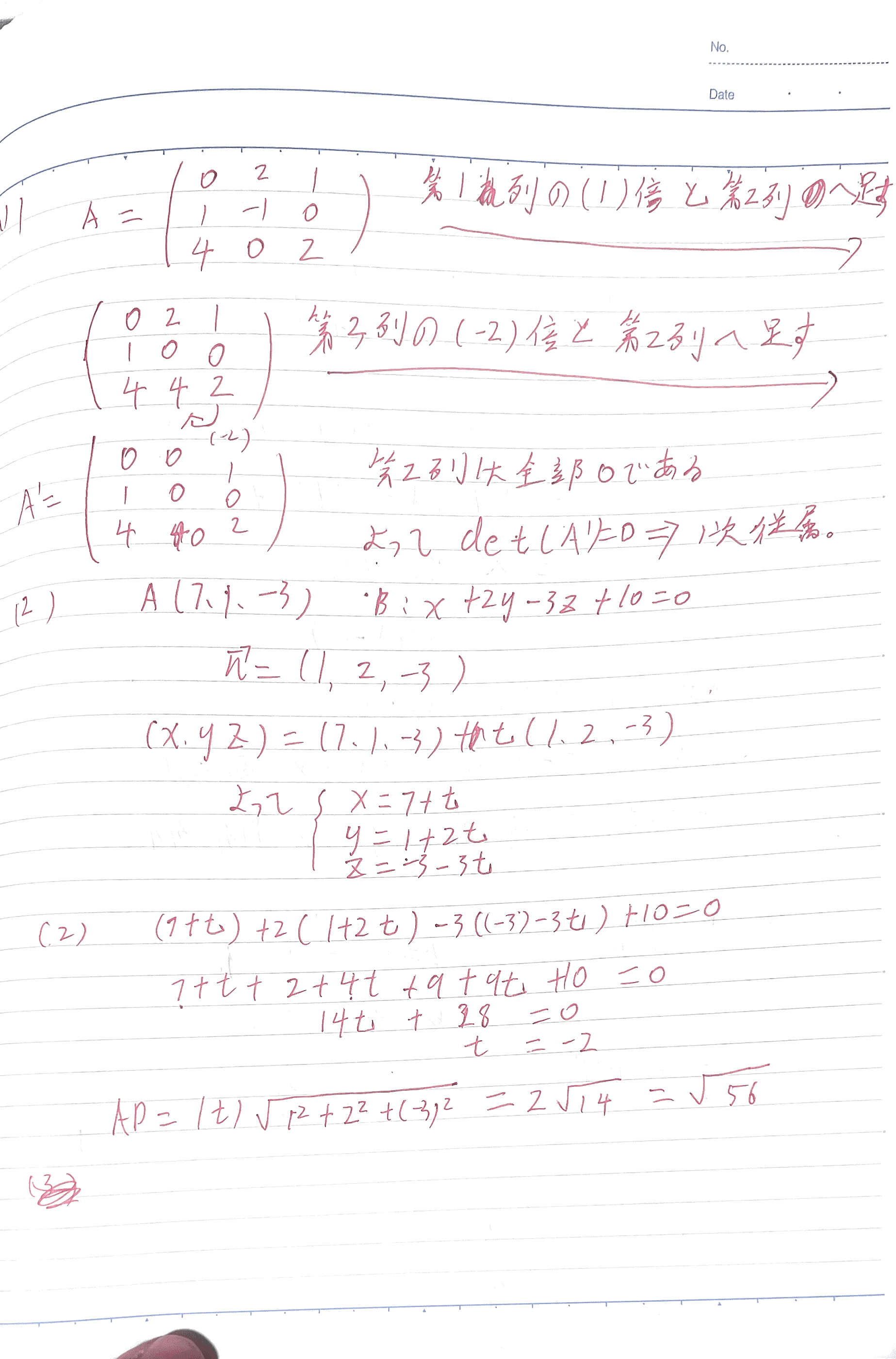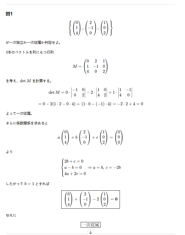 また,一次従属である場合には,その一次関係式を1つ求めよ。