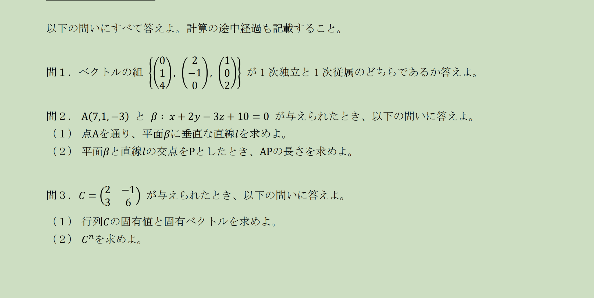 以下の問いにすべて答えよ。計算の途中経過も記載すること。