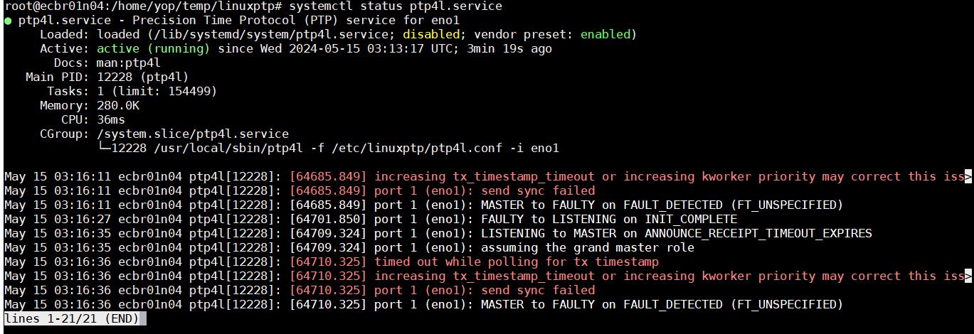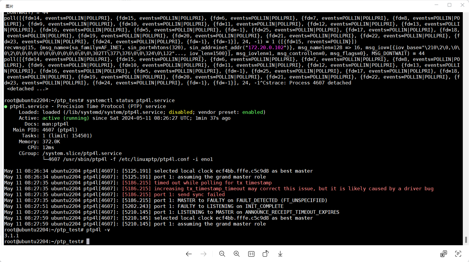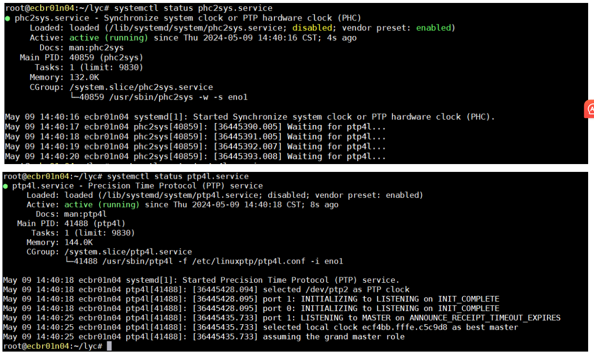 8.2>再次验证ptp4l服务已经正常