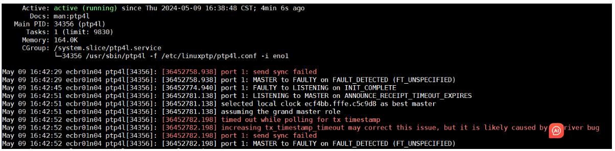 4.发现ptp4l有如下错误,send sync failed