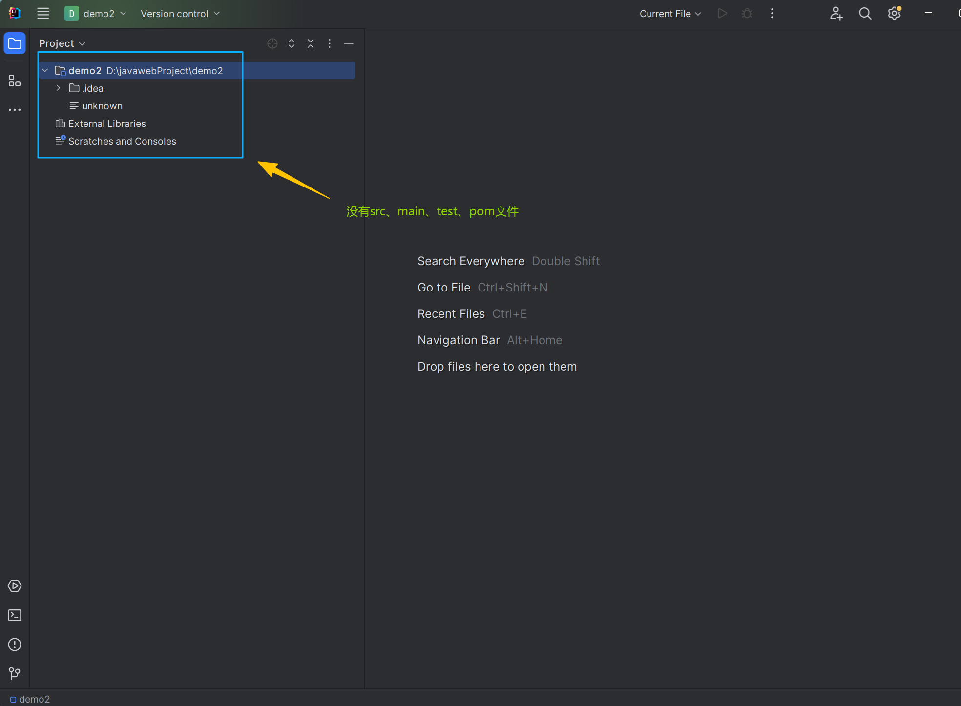 创建springboot项目,选择springboot版本时(不选默认版本),可能会缺失src、java、pom等文件问题