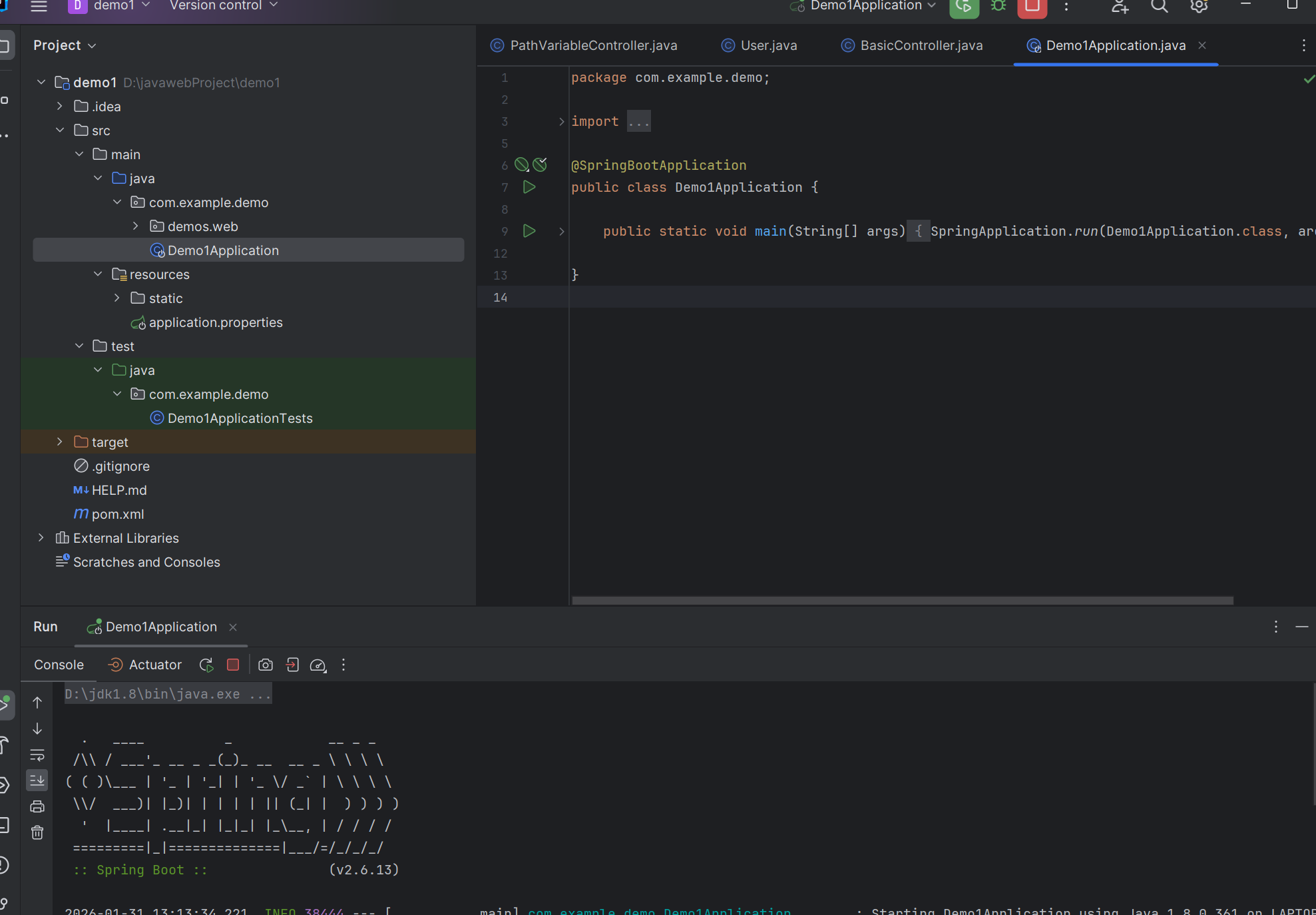 等待依赖包的下载以及同步,同步完成,一个 Spring Boot 项目骨架初步创建成功了