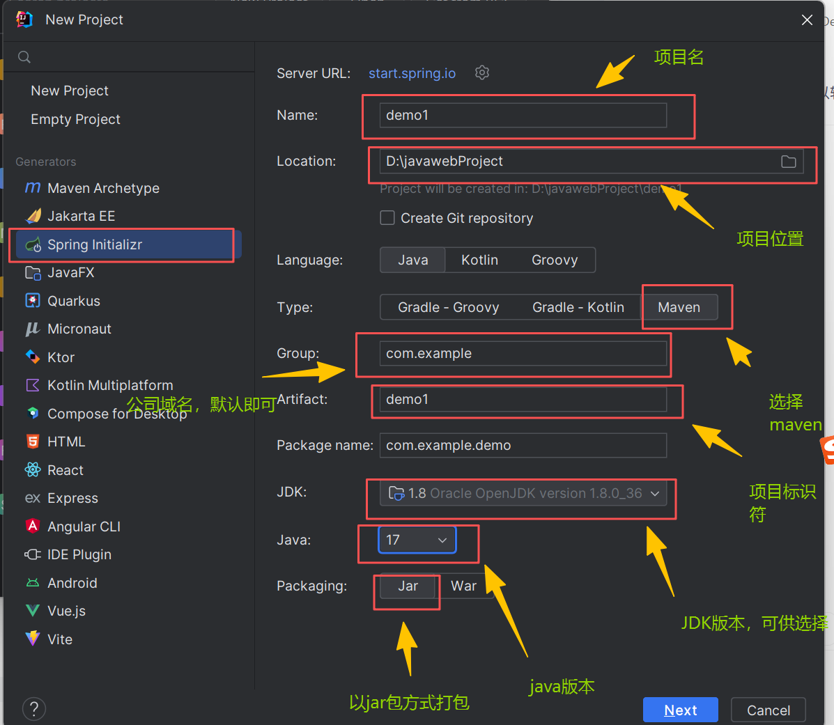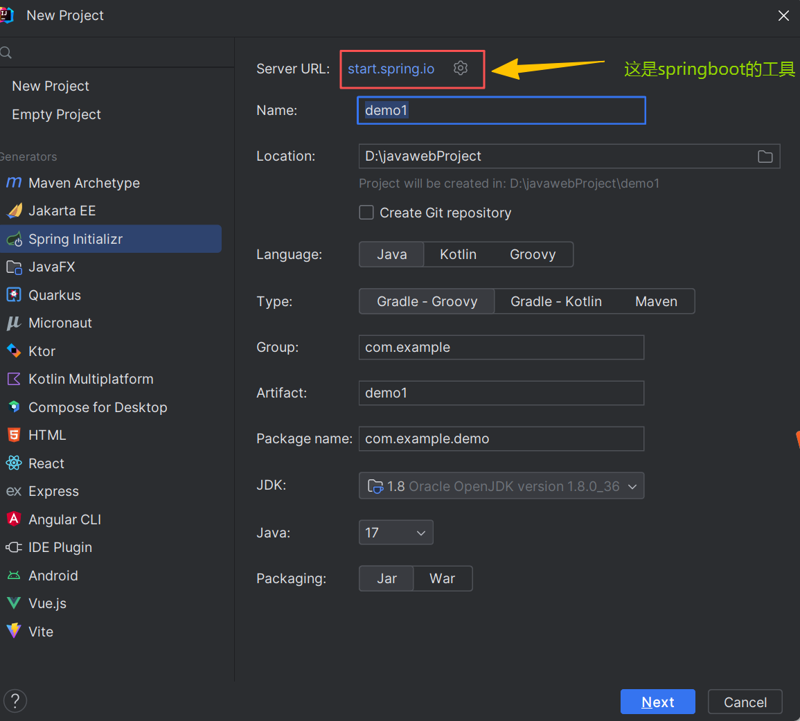 目前我们暂时 使用JDK1.8 ,所以idea为我们后面自动匹配的springboot版本为2.6.13(当然,若你经常使用JDK17以上版本,那么springboot选择3.0以上开头的版本也可以)