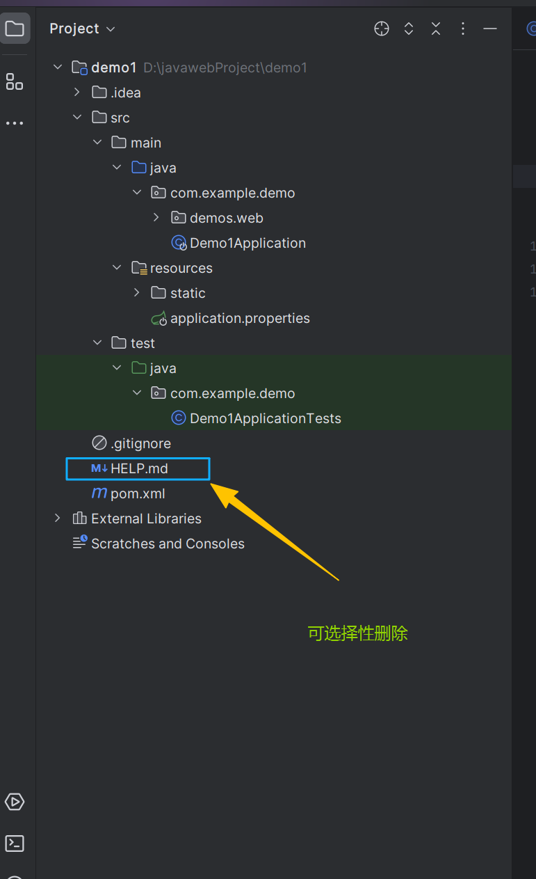 对于项目的目录结构,一般会删除 .mvn、HELP.md、mvnw、mvnw.cmd