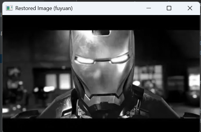cv2.imshow('Restored Image (fuyuan)', fuyuan)