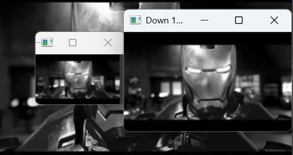 每次调用 pyrDown,图像尺寸缩小为原来的 1/2,画面更模糊,但保留了主要的轮廓信息。