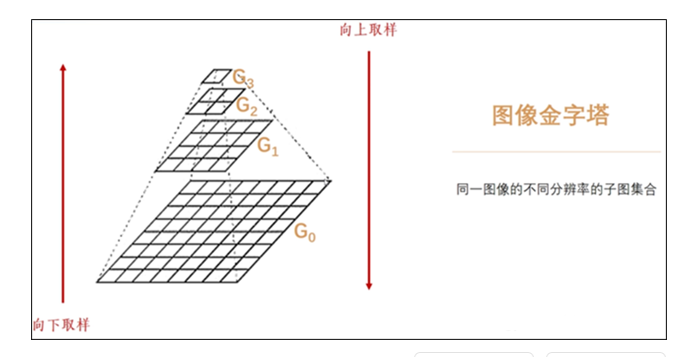 是由一幅图像的多个不同分辨率的子图构成的图像集合。是通过一个图像不断的降低采样率产生的,最小的图像可能仅仅有一个像素点。图像金字塔的底部是待处理的高分辨率图像(原始图像),而顶部则为其低分辨率的近似图像。