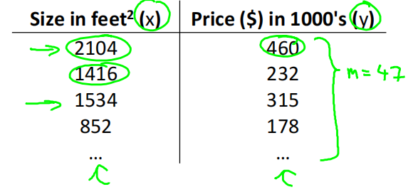 (𝑥 (𝑖) , 𝑦 (𝑖) ) - i th training example