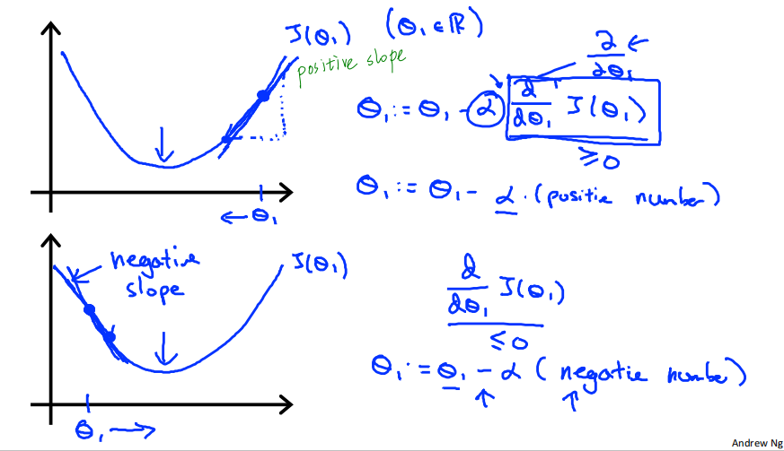 derivative导数项 can be a positive number or negative number, 对应positive slope or negative slope.