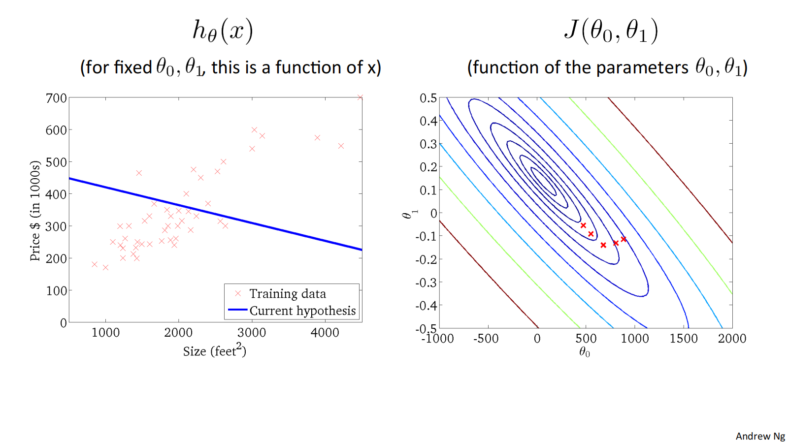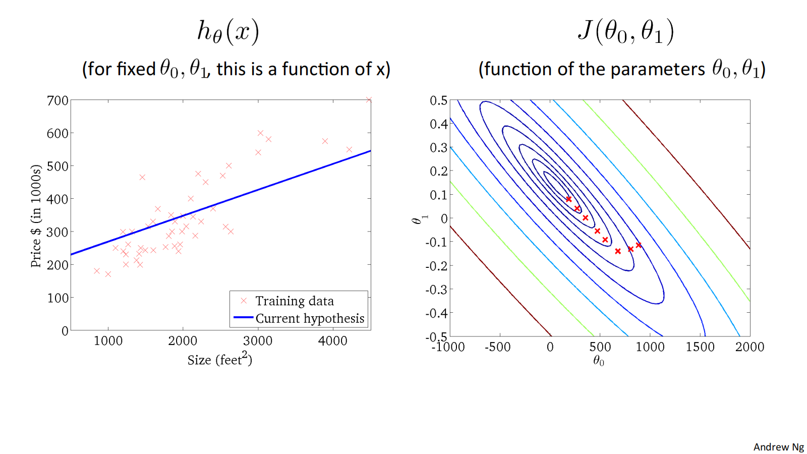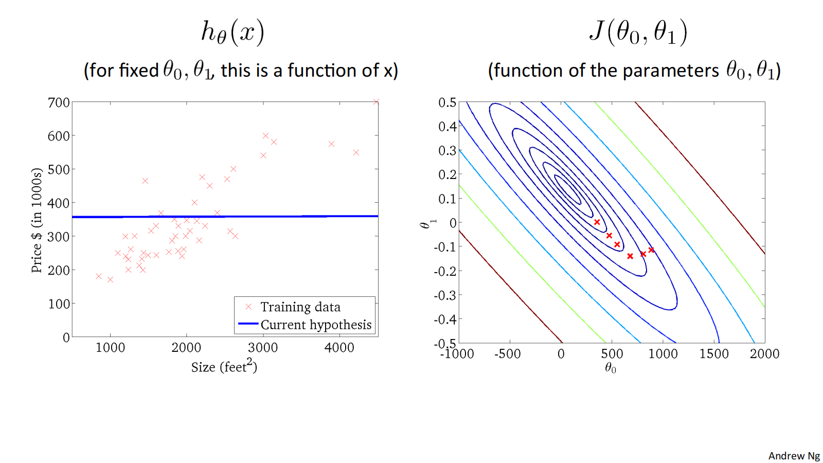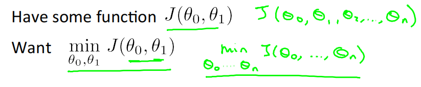 Goal: minimize{𝜃_0, 𝜃_1} 𝐽(𝜃_0, 𝜃_1)