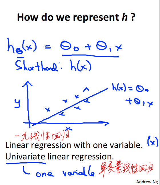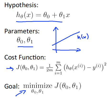 Hypothesis: ℎ_𝜃(𝑥) = 𝜃_0 + 𝜃_1x