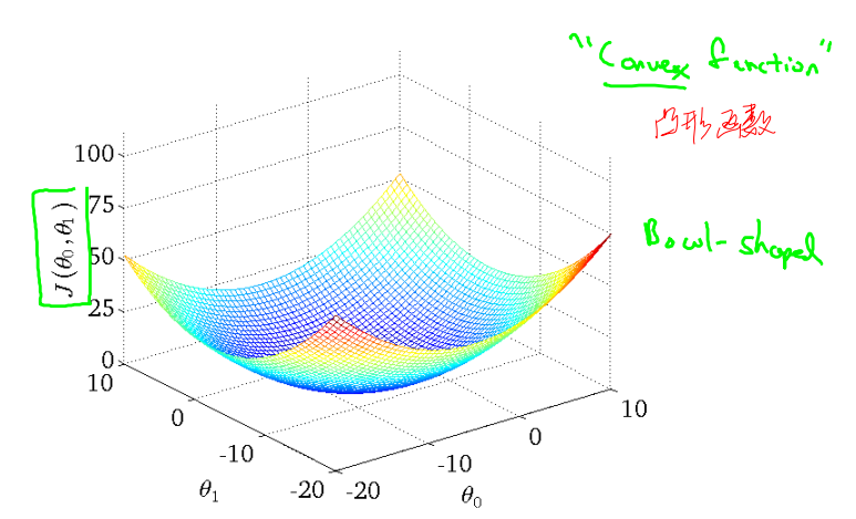 损失函数𝐽(𝜃_0, 𝜃_1) 对应的图像如下: