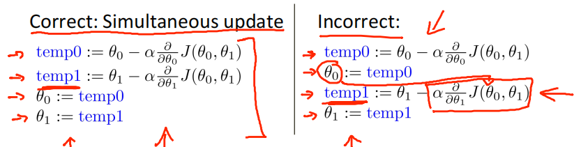 }Update 𝜃_0 and 𝜃_1 simultaneously
