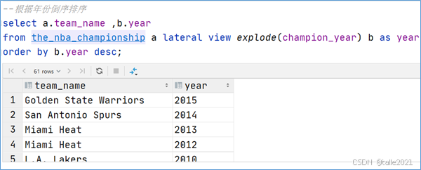 from the_nba_championship a lateral view explode(champion_year) b as year