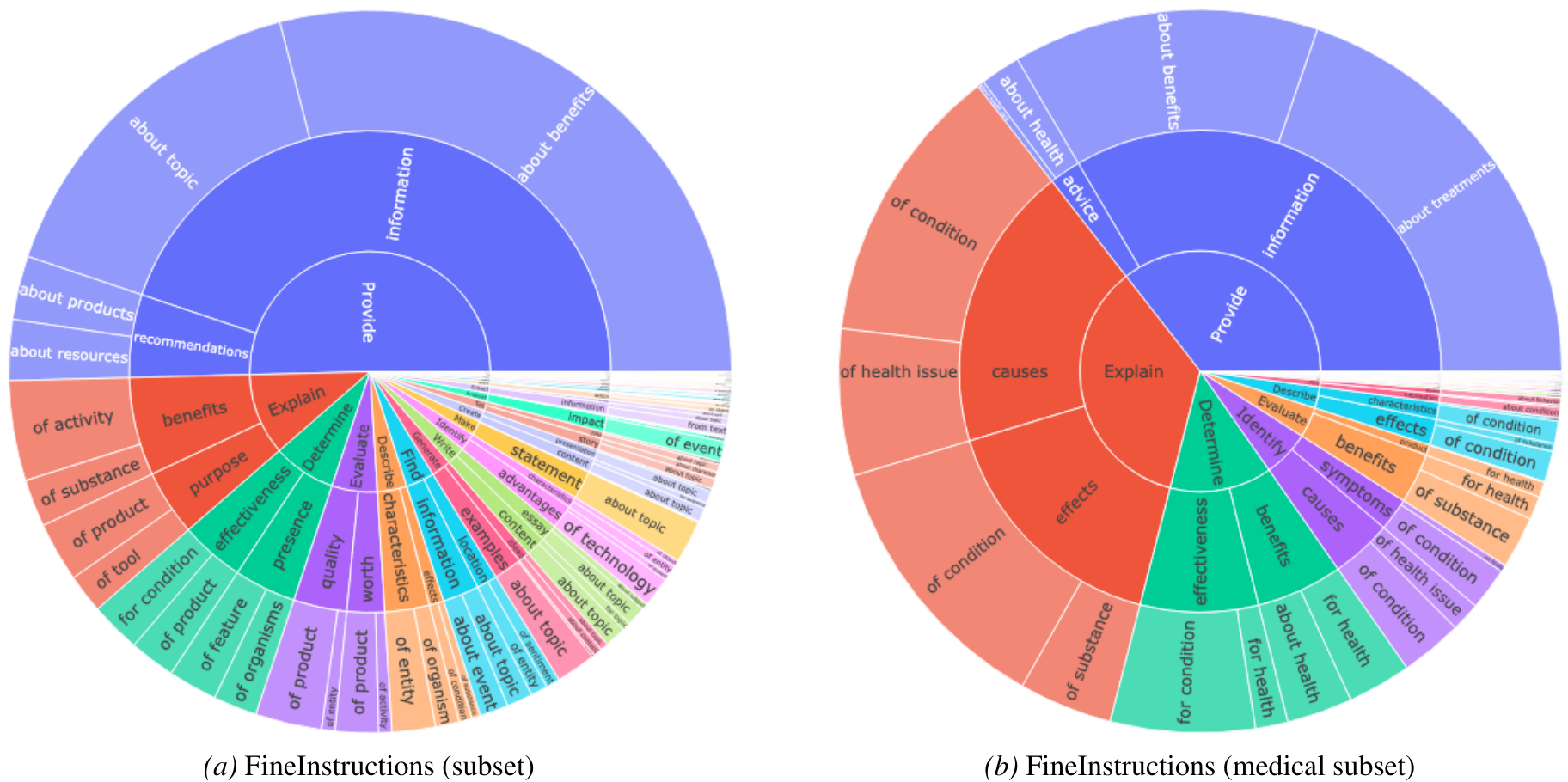 图 3:FineInstructions 中任务多样性的可视化。图中还展示了领域特定的多样性(以医学相关模板为例)。图表可从内环向外环读取每个"切片"的信息。