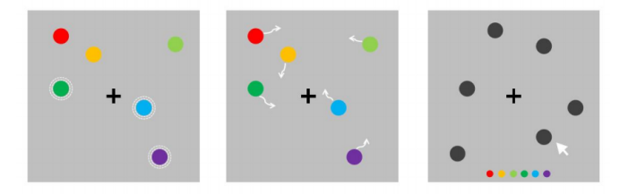 在多身份追踪任务中,被试需要将身份信息与位置信息一一对应,这要求运动客体的身份信息时刻与位置信息保持绑定。否则,如果被试仅能保持身份信息而无法将其与正确的位置匹配,此时便会发生错误。