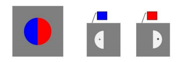 在布尔地图理论看来,对一红一蓝两个客体而言,要在呈现的瞬间同时访问(处理)二者的颜色是无法做到的,因为要想表征二者的颜色,则必须先后创建两张布尔地图进行串行访问,即使对由红色半圆和蓝色半圆拼接而成的圆盘来说,要同时访问其两种颜色也是无法做到的,尽管只有一个客体。红色半圆和蓝色半圆只能被先后地串行地表征在两张布尔地图上。而对于同特征的多个客体而言,如两个绿色客体,则可以被同时访问,因为它们可以被表征在同一张布尔地图上。这与客体理论的观点相违背,客体理论认为,包含一个客体的所有不同特征可以被同时访问,而对多个客体则需要串行访问(Scholl,2001)。