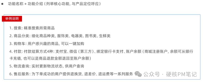 :列 3-5 个核心功能,不用贪全。电商产品的基础功能跑通就行,比如商品搜索、分类浏览、购物车、多渠道支付(微信 / 支付宝 / 银行卡)、物流查询、售后服务,先把这些核心链路打通,后续再迭代增值功能。