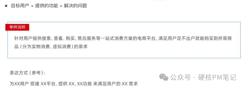 :一句话说清 ------ 为谁提供什么服务,解决什么问题。比如 "为职场年轻人搭建一站式轻奢好物平台,提供精选商品 + 极速配送服务,满足高效品质购物需求",越具体越有方向。