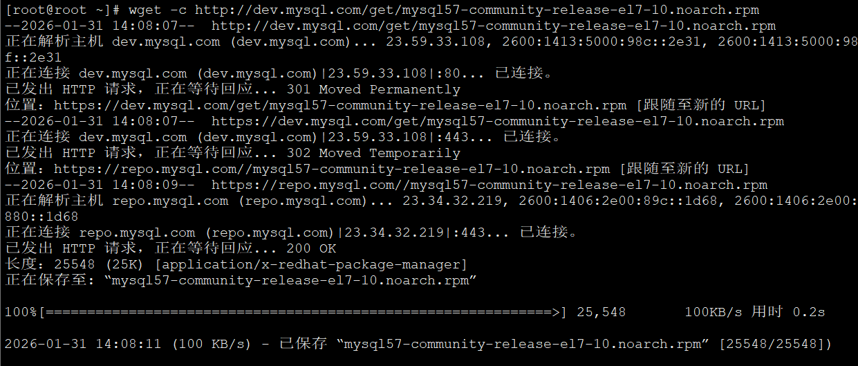 wget -c http://dev.mysql.com/get/mysql57-community-release-el7-10.noarch.rpm