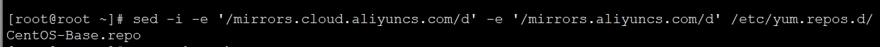 sed -i -e '/mirrors.cloud.aliyuncs.com/d' -e '/mirrors.aliyuncs.com/d' /etc/yum.repos.d/CentOS-Base.repo