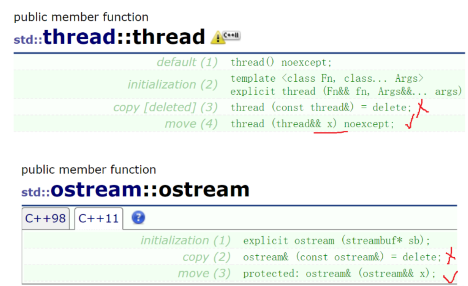 - 手动实现拷贝构造 / 赋值后,默认移动构造 / 赋值不再生成,需手动添加或用