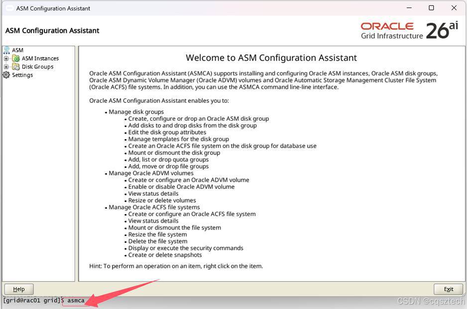 Automatic Storage Management (ASM) instance is detected in this Oracle home /u01/app/26.1.0/grid.