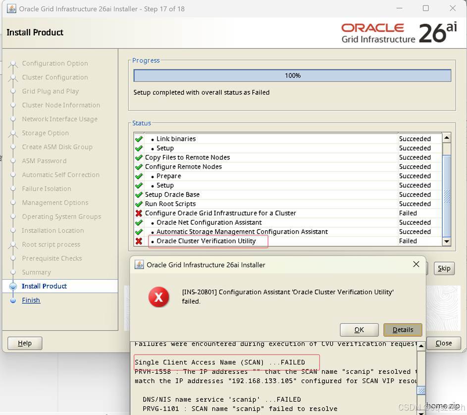 2026/01/30 17:18:04 CLSRSC-594: Executing installation step 18 of 18: 'PostConfig'.
