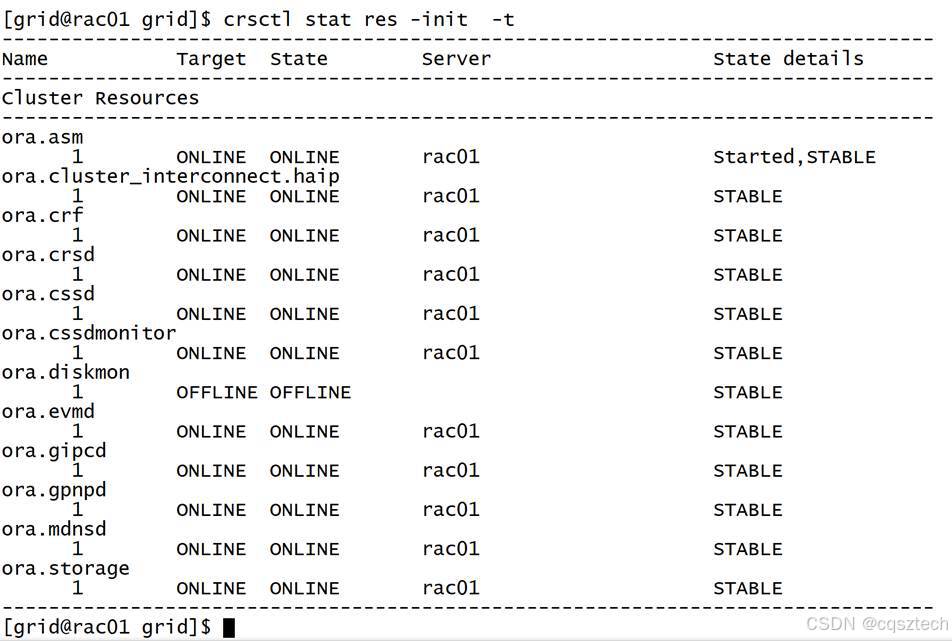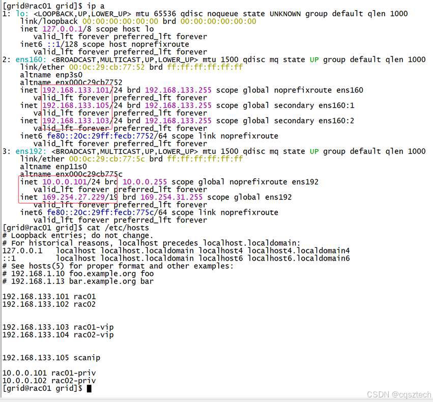 | RAC01 | 192.168.133.101 | 192.168.133.103 | 10.0.0.101 | 192.168.133.105 |