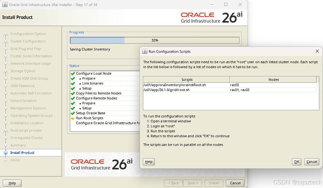 以下是Oracle 26ai 2节点RAC安装步骤: