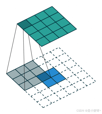 如下图是一个卷积核(kernel)为3×3、步长(stride)为1、填充(padding)为1的二维卷积: