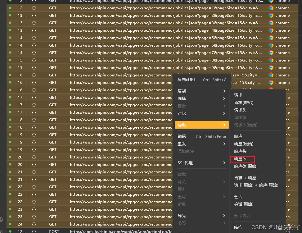 关键词:控制鼠标滚轮下拉,Reqable 导出响应数据,获取boss职位数据
