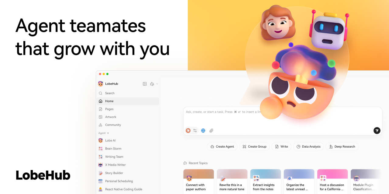 - 💡 推荐语: LobeHub打造未来工作空间,通过多智能体协作与团队化设计,让AI智能助手成为与你共同成长的得力工作伙伴。