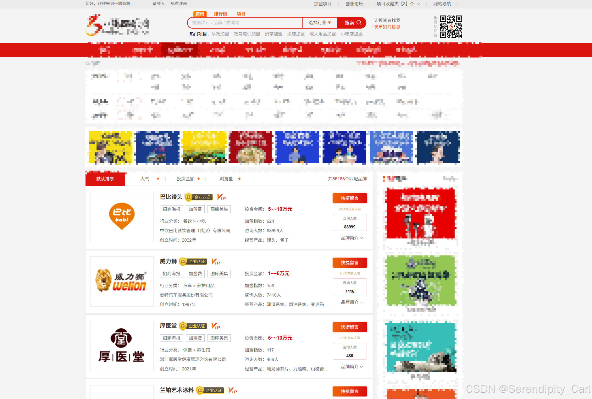 大家好!今天我们来实战一个加盟品牌信息爬虫 项目 目标网站是1637加盟网(www.1637.com),这是一个提供各种品牌加盟信息的平台 通过这个项目,你将掌握如何: