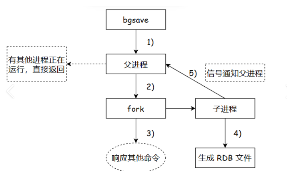 - 如果当前已经有一个子进程在执行bgsave了,那么就会直接把当前还需要执行的bgsave返回。