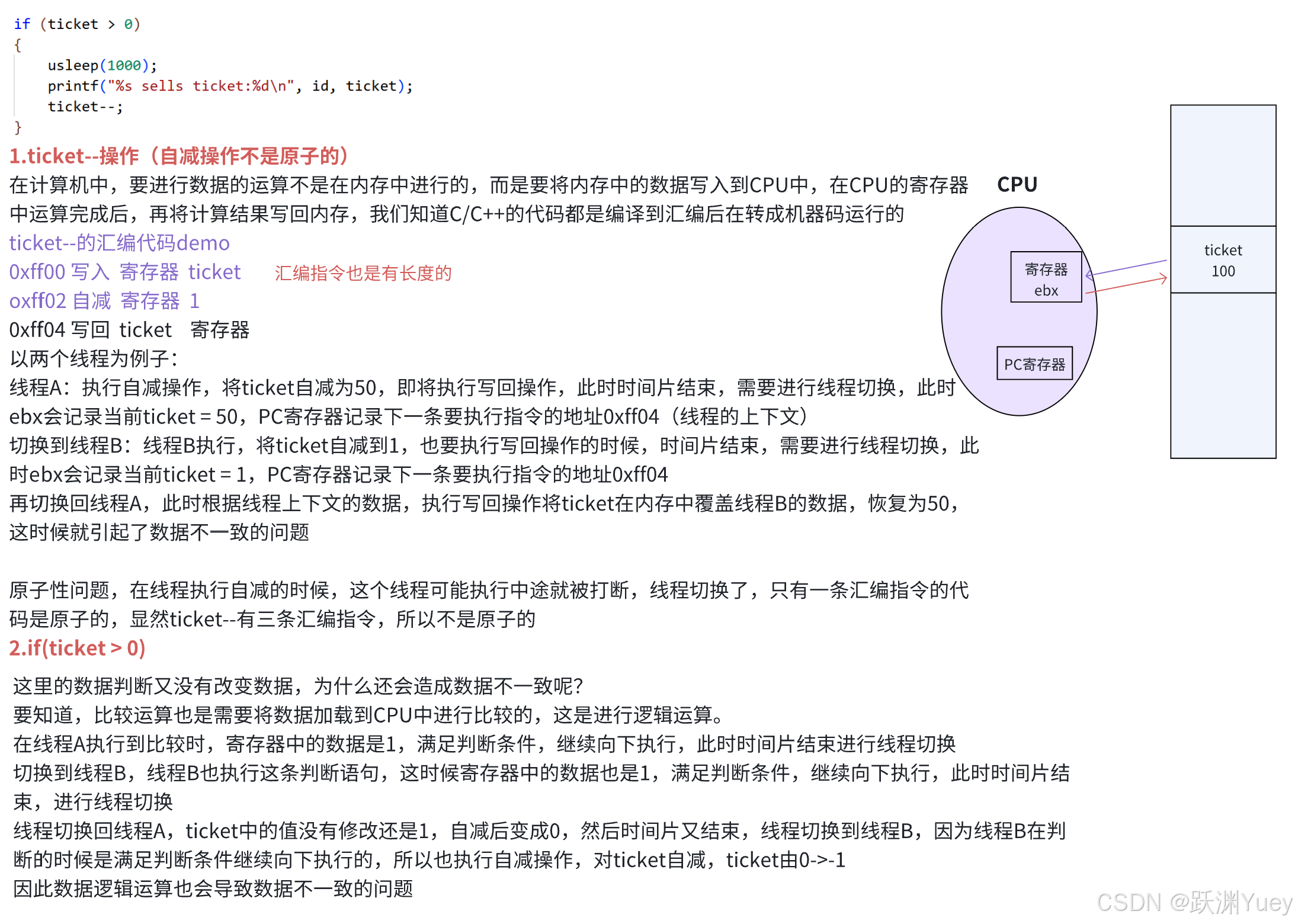 - 竞态条件:因为时序问题,而导致程序异常,我们称之为竞态条件。