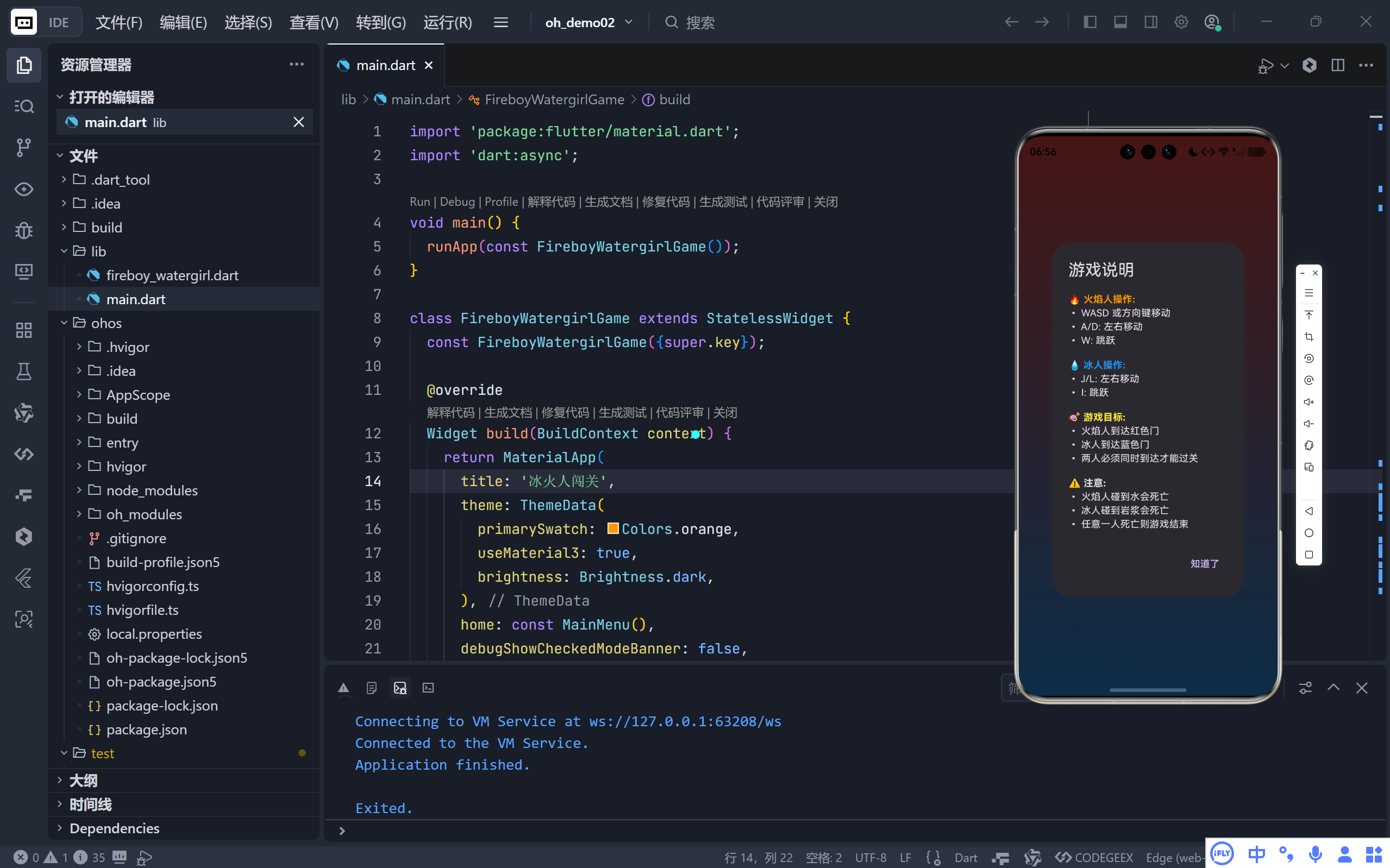 框架实现的《冰火人》风格双人合作闯关游戏的完整源码。我们将逐层拆解其架构设计、核心逻辑与交互细节,揭示如何用 Dart