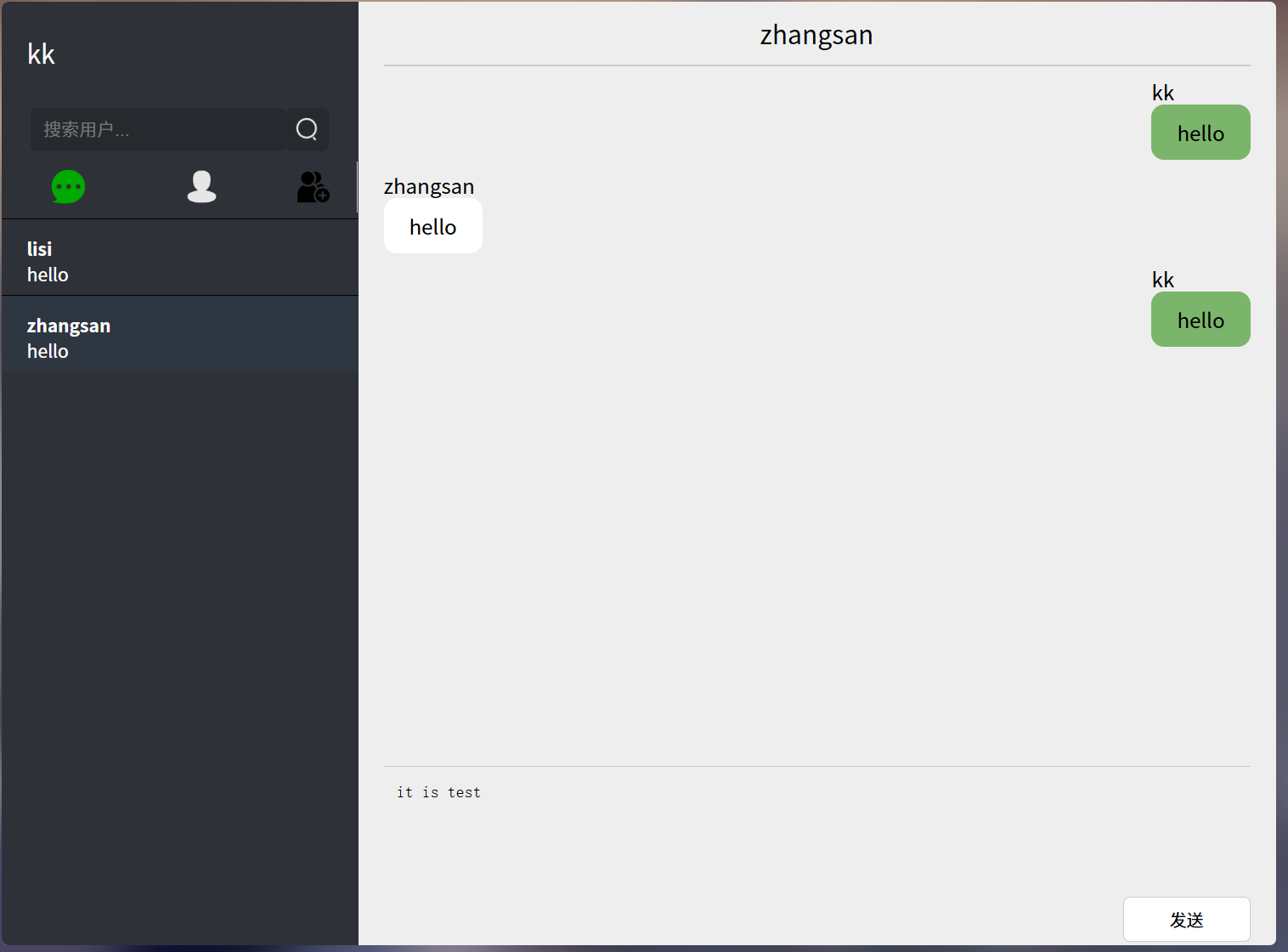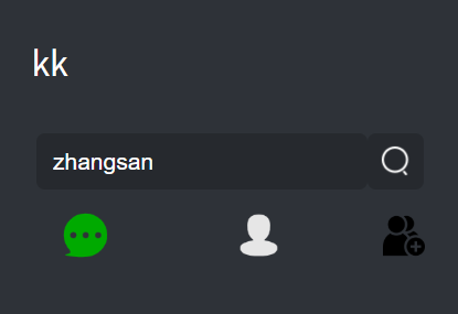 预期结果:点击"搜索用户"的搜索栏,可以输入用户名,搜索结果为搜索用户名的用户,并切换为好友列表,图标变绿