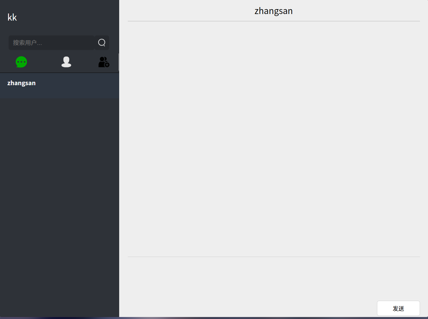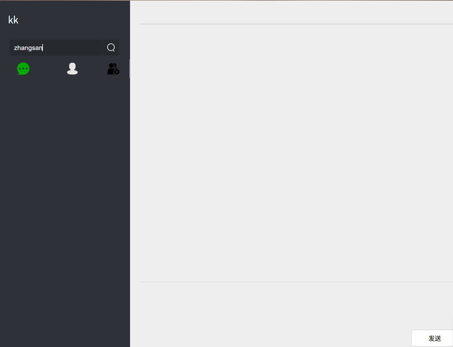 预期结果:点击"搜索用户"的搜索栏,可以输入用户名,但并不会进行搜索结果,并且仍然处于会话列表