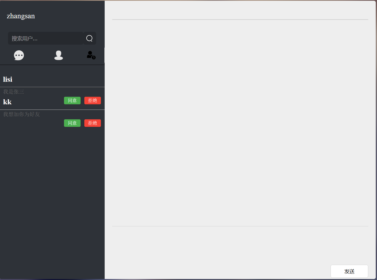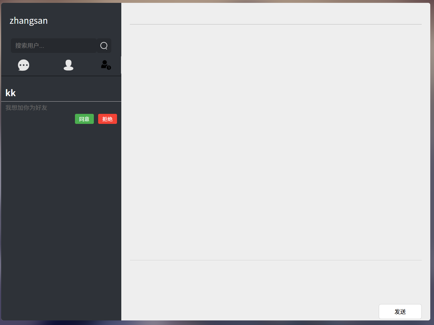 ④搜索已发送好友申请的用户,并点击添加好友按钮