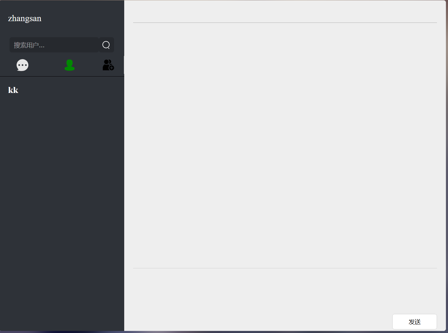 ③点击"搜索用户"的搜索栏,输入存在的用户名进行搜索,并点击搜索按钮
