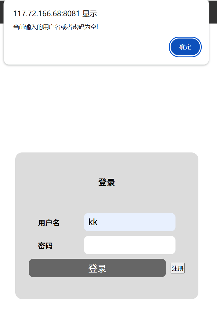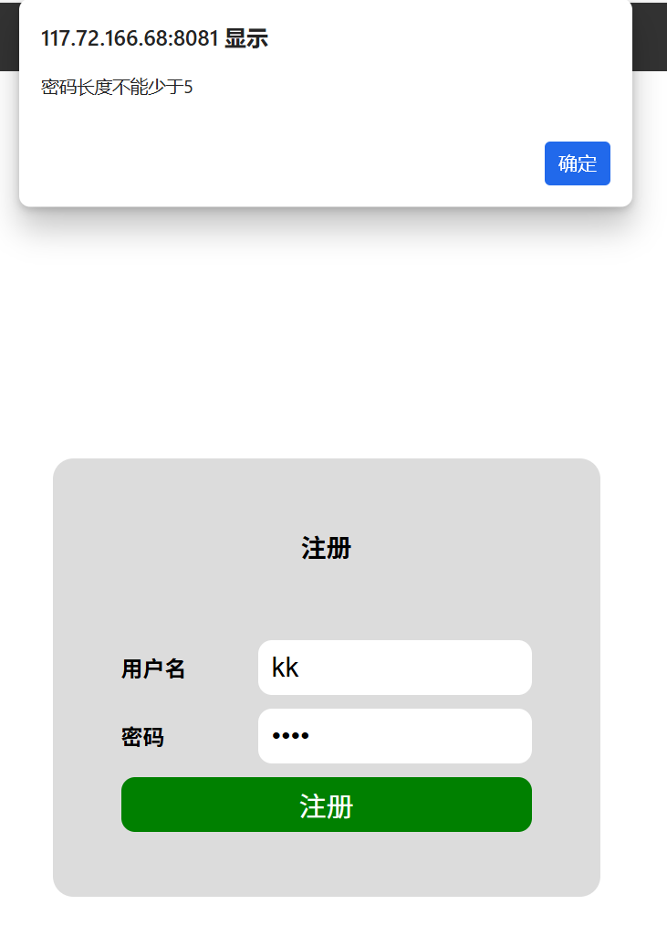 ⑥输入长度不大于20的非空用户名,输入长度小于5的密码