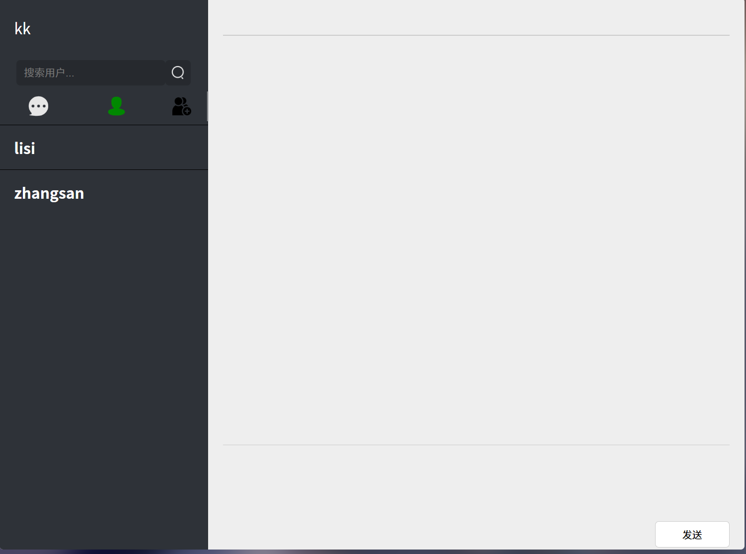 预期结果:点击"搜索用户"的搜索栏,可以输入用户名,但搜索结果显示为未找到相关用户,并切换为好友列表,图标变绿