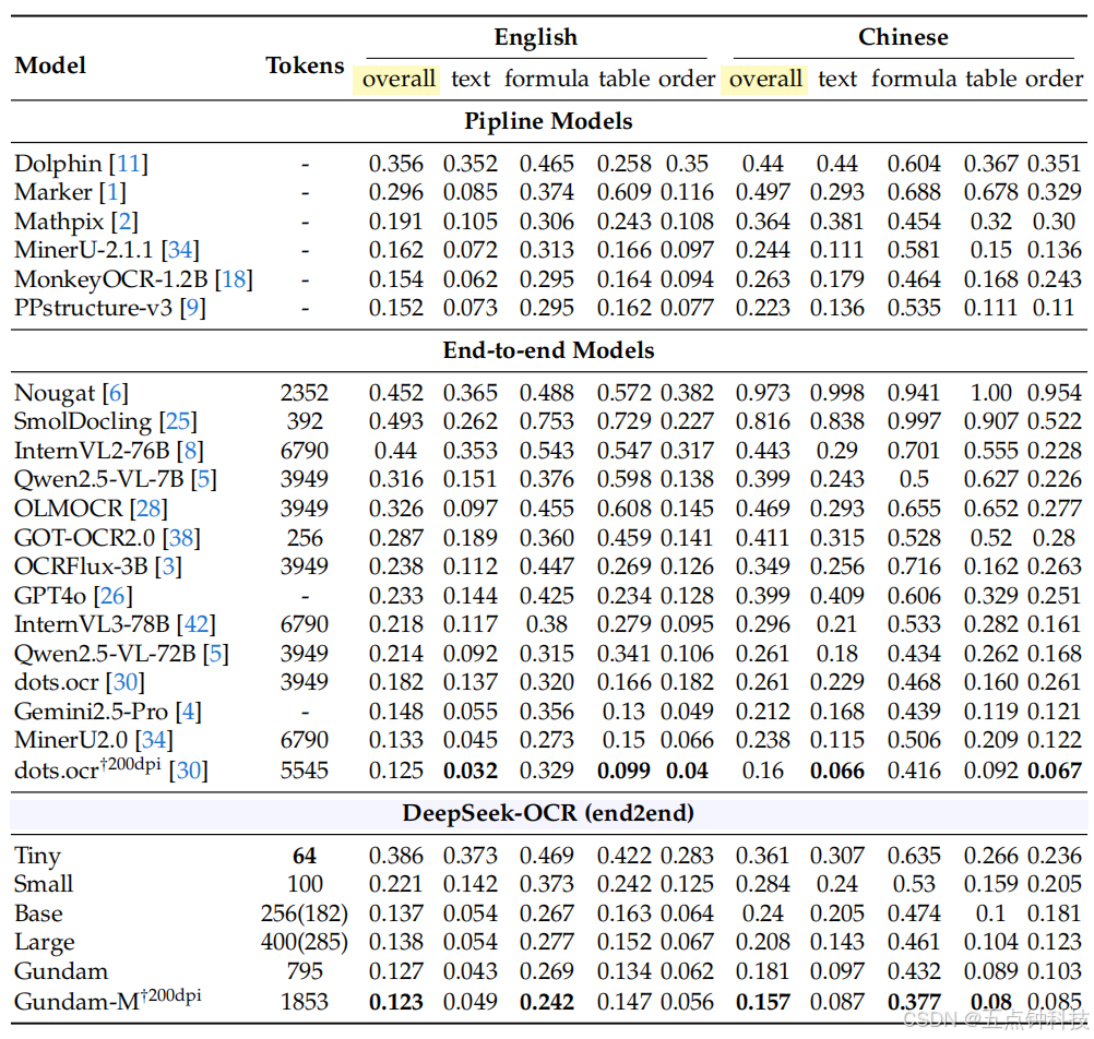 of-the-arts on this benchmark. Using fewer than 800 tokens (Gundam mode), DeepSeek-OCR
